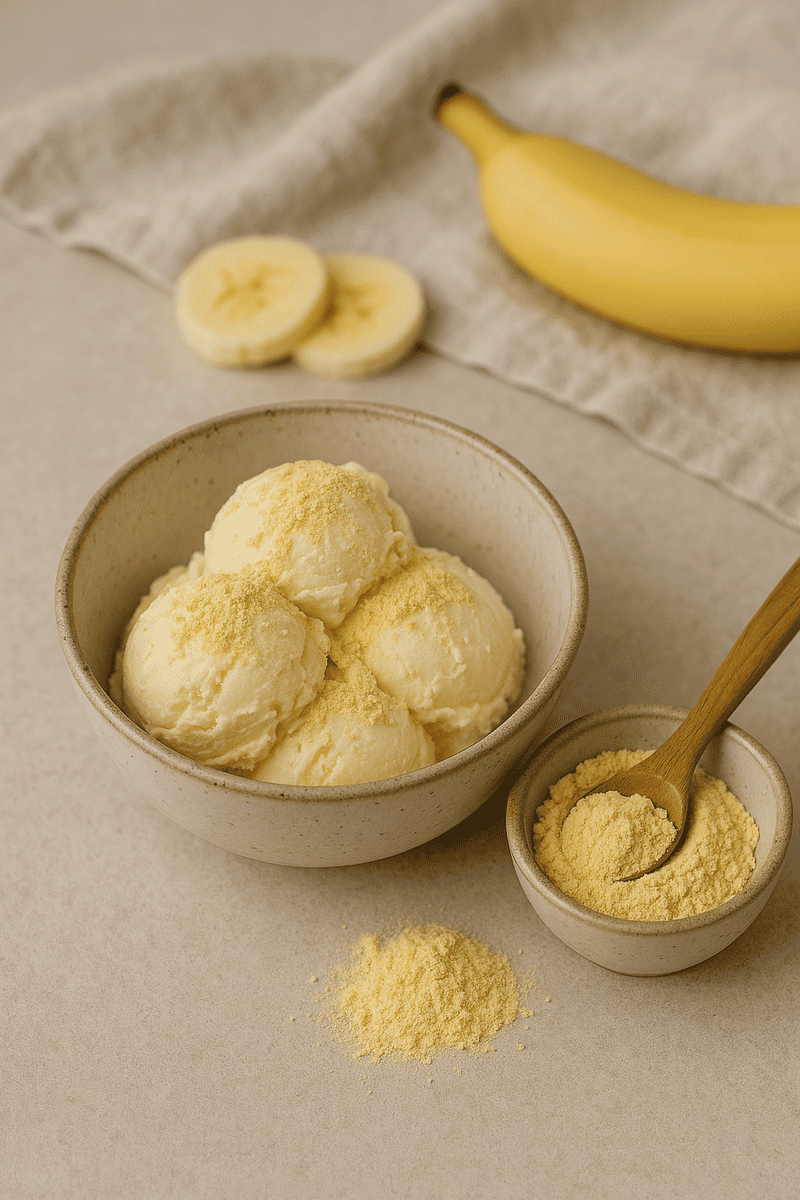 Banana powder is a fine, naturally sweet powder made from ripe bananas that have been carefully peeled, sliced, dehydrated and ground into a smooth, light-yellow powder. This process preserves much of the fruit’s natural flavor and sweetness, resulting in a versatile, fiber packed ingredient.