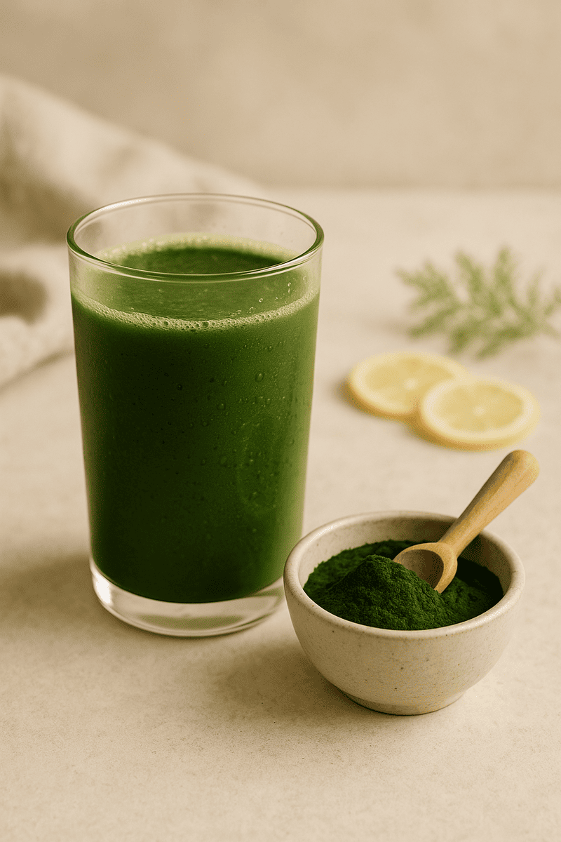 Chlorella powder is a green, nutrient-rich powder made from the microalga Chlorella. Chlorella is grown in freshwater, where the algae biomass is collected through filtration. After that, the biomass is dried and ground into a fine powder.